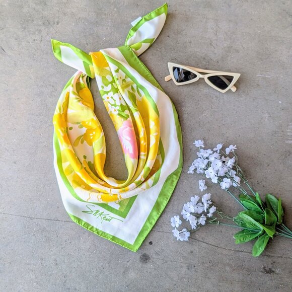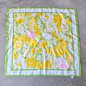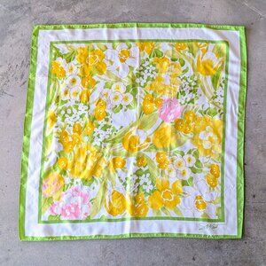 Vintage Avon Yellow Green Pink Oversized Square Scarf