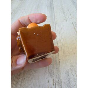 about 2-in tall by 2.5x2-in, does have damage on his foot where it's chipped, couple marks otherwise no other problems