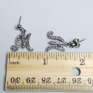 Vintage Avon M Monogram Letter Dangle Charm Stud Earrings, Silver Tone Initials