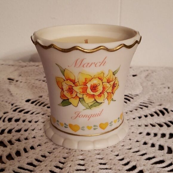 Vintage Avon "MARCH JONQUIL" Birthday Month Candle in Decorative Ceramic Holder