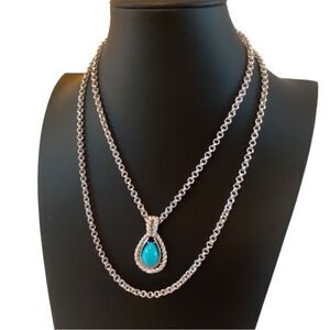 Vintage Avon Teardrop Pendant on Double Layered Silvertone Chain.