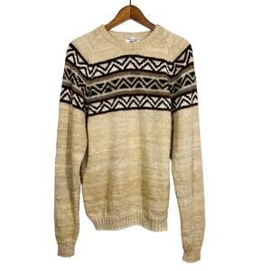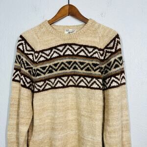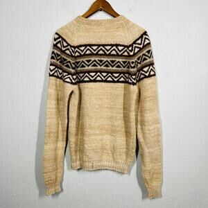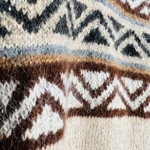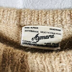Vintage Aymara Alpaca Crewneck Sweater Peru Tan Brown Artesania SOFT - L