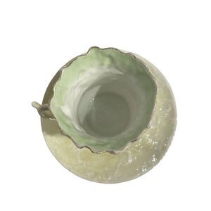 This vintage Aynsley bone china teacup and saucer set features a light yellow color with a touch of green, adding a charming and elegant touch to your tea-drinking experience. this two-piece set includes a cup and saucer and is perfect for enjoying hot or cold beverages. The vintage nature of this set adds a unique and classic flair to any kitchen or dining room, making it a desirable collectible. No chips or breaks. Item 878
