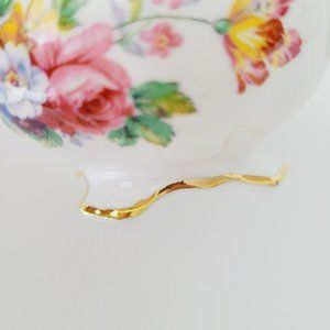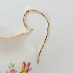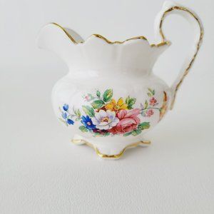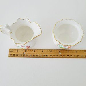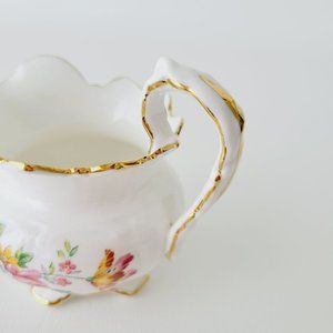 Vintage Aynsley Petite Floral Footed Creamer & Sugar Bowl with gold edging, and 4oz. capacity. Beautifully crafted in England from bone china.