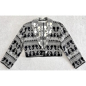 Vintage Aztec Crop Jacket Southwestern Tapestry Metal Button Western Ranch