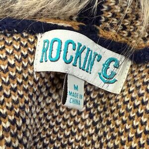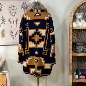 Vintage Aztec Faux Fur Collar Sweater Jacket Southwestern Cowgirl Boho Western M