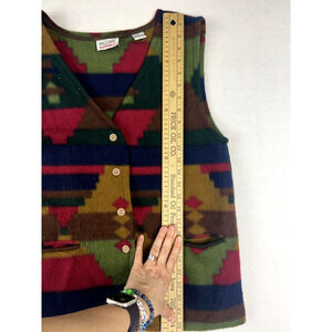 Vintage Aztec Fleece Vest Southwest Boho Western Geometric Button Up Pockets