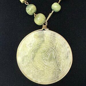Vintage Aztec Hand Carved Alabaster Stone Beaded Necklace 1970's (A)