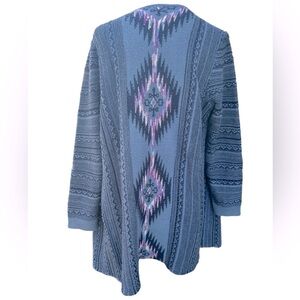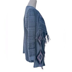 Vintage Aztec Print Fringed Open Front Cardigan Women’s Size Large Purple Blue