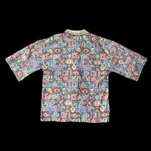 Vintage Aztec Shirt Geometric Pastel Tan Button Down Koret USA 1990s Womens