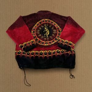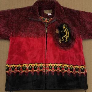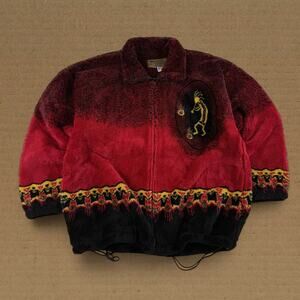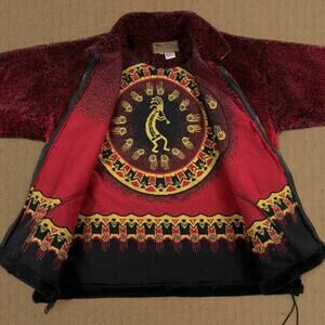 Vintage Aztec Tribal Black Red Yellow African Fleece 90s Made in USA Size Large