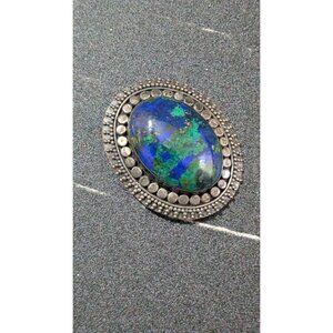 Vintage Azurite Malachite Sterling Silver Oval Brooch 925 Jewelry