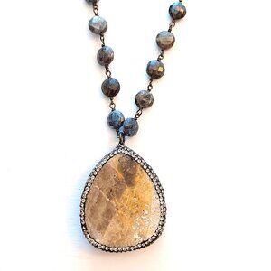Vintage B Alli Gray Glass Necklace With Stone Iridescent Pendant