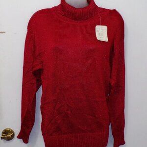 Vintage B Altman 5th Ave NY Red Metallic Lurex Turtleneck Sweater NWT