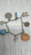 Charming silver bracelet featuring various charms with blue accents. Stamps present interesting piece sold as photographed.