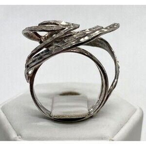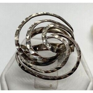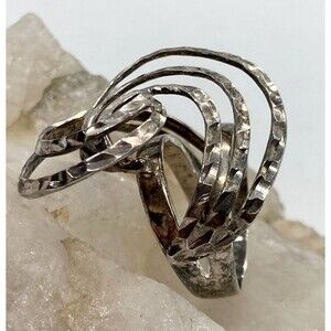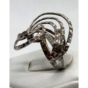 Vintage B Italy Flourish Hammered Swirl Ring Size 6 Sterling 925 Silver 5.7g