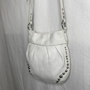 Vintage B MAKOWSKY Crossbody Bag Pebbled Leather Studded Adjustable Strap White
