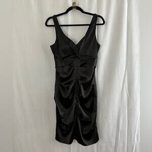 Vintage B. Smart Black Satin Ruched Mini Cocktail Dress Womens Size 7/8