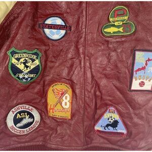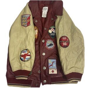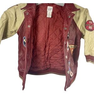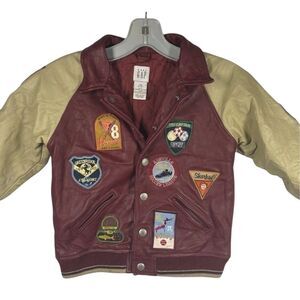 Vintage BABY GAP Red Leather Jacket w/ Sports Patches Varsity 4XL 4T Very Rare