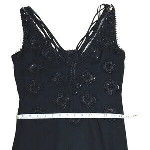 Vintage BADGLEY MISCHKA Black Silk Chiffon Hand Beaded Cocktail Evening Dress 8