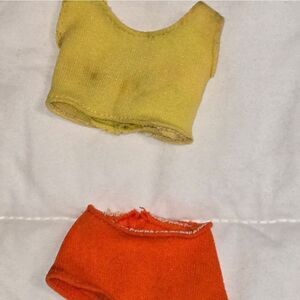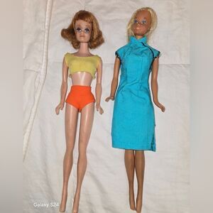both of these dolls need TLC they are a little damaged they are stain they need some cleaning the blue dress look like it was handmade but the shorts and the top they are original both dolls are considered vintage dolls please view all photos before purchase and keep in mind they will need some cleaning I sell them they way they are I don't know how to remove the stains from the eyes or the legs or the body arms but here they are if you interested the clothes is stain also any questions please ask before purchase otherwise these two dolls sell as they are