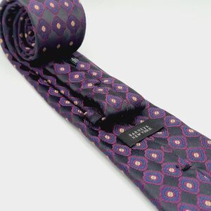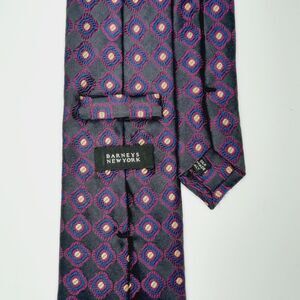 Vintage BARNEYS NEW YORK Handmade Purple Blue Tan Necktie Tie Silk Made ITALY