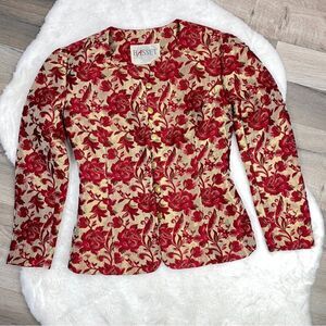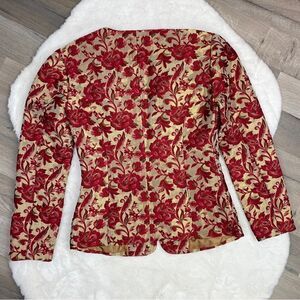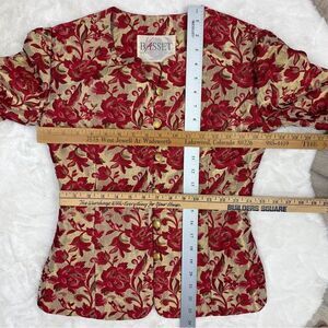 Vintage BASSET Floral Brocade Hip Jacket Button Front Gold Red 38 Petite Small