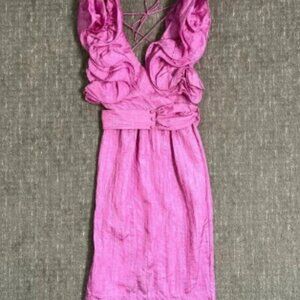 Vintage BB Collections Dress Pink Ruffle Avant Garde Belted Size 8 80’s
