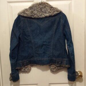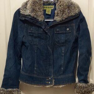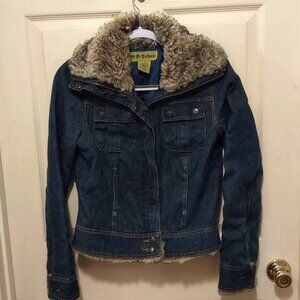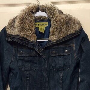 Vintage BB Dakota Denim Faux Fur Jean Jacket With Pockets Sz M Lined