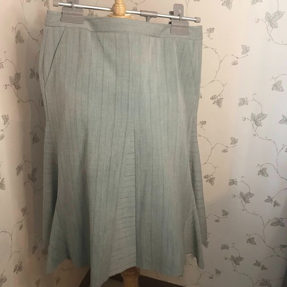 Vintage BCBG MAXAZRIA Light Gray with Pinstripe Midi-Length Skirt wit