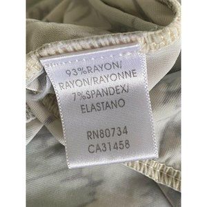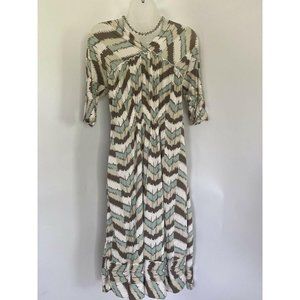 Vintage BCBG BCBGMAXAZRIA Size Medium. Green, Tan, White. Retro Abstract Print Slinky V Neck Dress Rayon Spandex. Flat Measurements: Pit to Pit 15″ Length: 42″ waist : 25″. Condition is Vintage very Good.