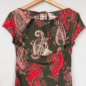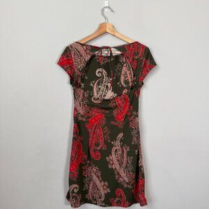 Vintage BCBG Paisley Open Back Mini Dress Women's Medium Green Red Y2K Party