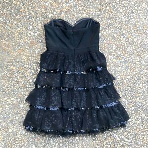 Vintage BCBG Sequin ruffled strapless mini lace party dress 2