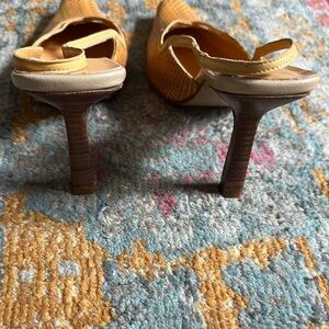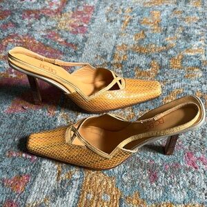 Vintage BCBG Yellow Snakeskin Patterned Slingback Heels
