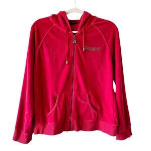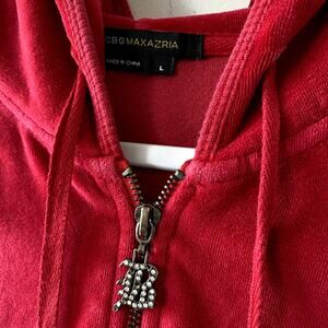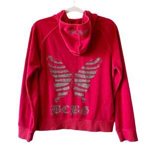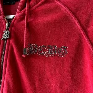 Vintage BCBGMAXAZRIA Red Velour Embellished Butterfly Y2K Zip Sweater