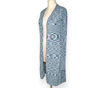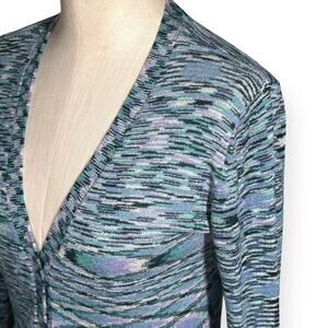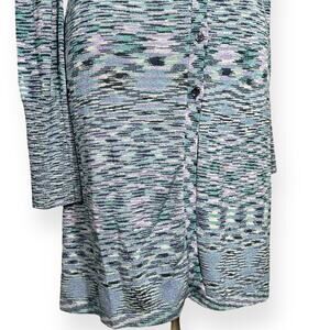 Vintage BCBGMAXAZRIA Y2K Cardigan Sweater Dress Button Up Sheath Teal Abstract