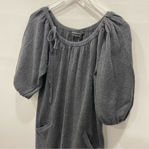 Vintage BCBGMaxAzria Cotton Lambswool Billow Sleeve Shift Dress Medium Grey