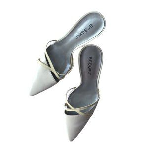 Vintage BCBGirls Off White Patent Leather Pointy Toe Slip-on Mules