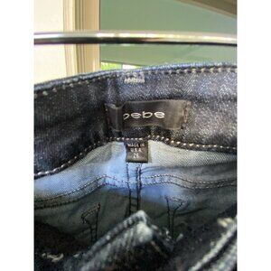 Vintage BEBE Y2K Dark Denim Blue Crop Jeans White Stitching