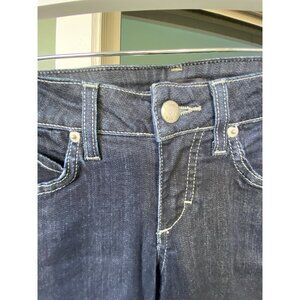 Vintage BEBE Y2K Dark Denim Blue Crop Jeans Size 26 White Stitching Made in USA