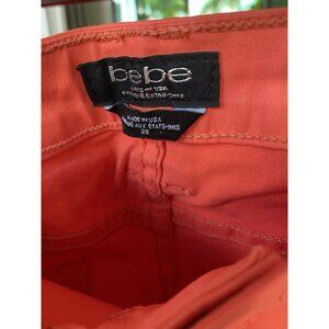 Vintage BEBE Y2K Moto Coated Skinny Zipper Jeans Orange Size 28 Made in USA