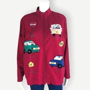 Vintage BECHAMEL Mom's Taxi Patch Jacket in Red - L
