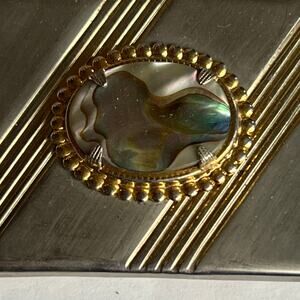 Vintage BELT BUCKLE gold silver tone ABALONE shell EUC Men or women UNIQUE
