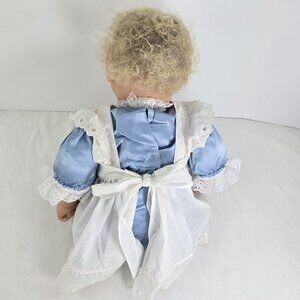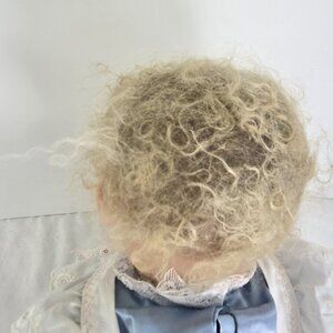 This vintage BERENGUER Reborn Baby Girl Doll is a rare find for collectors and doll enthusiasts alike. The doll stands at 19 inches tall and weighs around 6 lbs, with curly blonde hair and closed eyes. The doll's complexion is light, and her outfit consists of a dress and removable clothes.