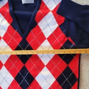 vintage Berk men's argyle sweater from Berk Burlington Arcade in London classic red, white, and Navy 100% Cashmere. Perfect for adding a touch of sophistication to your wardrobe.used excellent condition