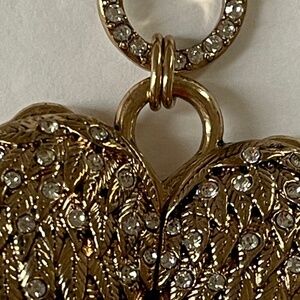 Vintage BETSEY JOHNSON Fly With Me Angel Wing Crystal Heart Big Pendant RARE