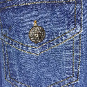 This denim blouse is 100% cotton and features 2 functional pockets, embroidered design with beads on collar/front of top along with splits on both sides.