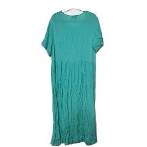 BFA Classics Green Long Maxi Dress Short Sleeve Button Up Front