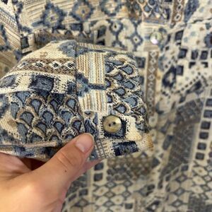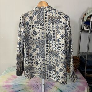 Vintage BFA size 14 Blue and Cream Patterned jacket tapestry print abalone