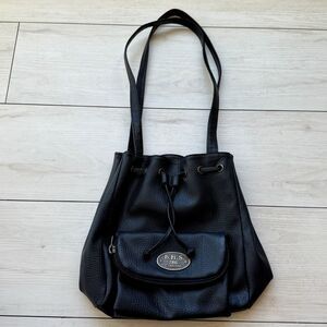 Vintage BH Smith Purse Black Leather Bucket Bag Shoulder Strap Pebble Leather